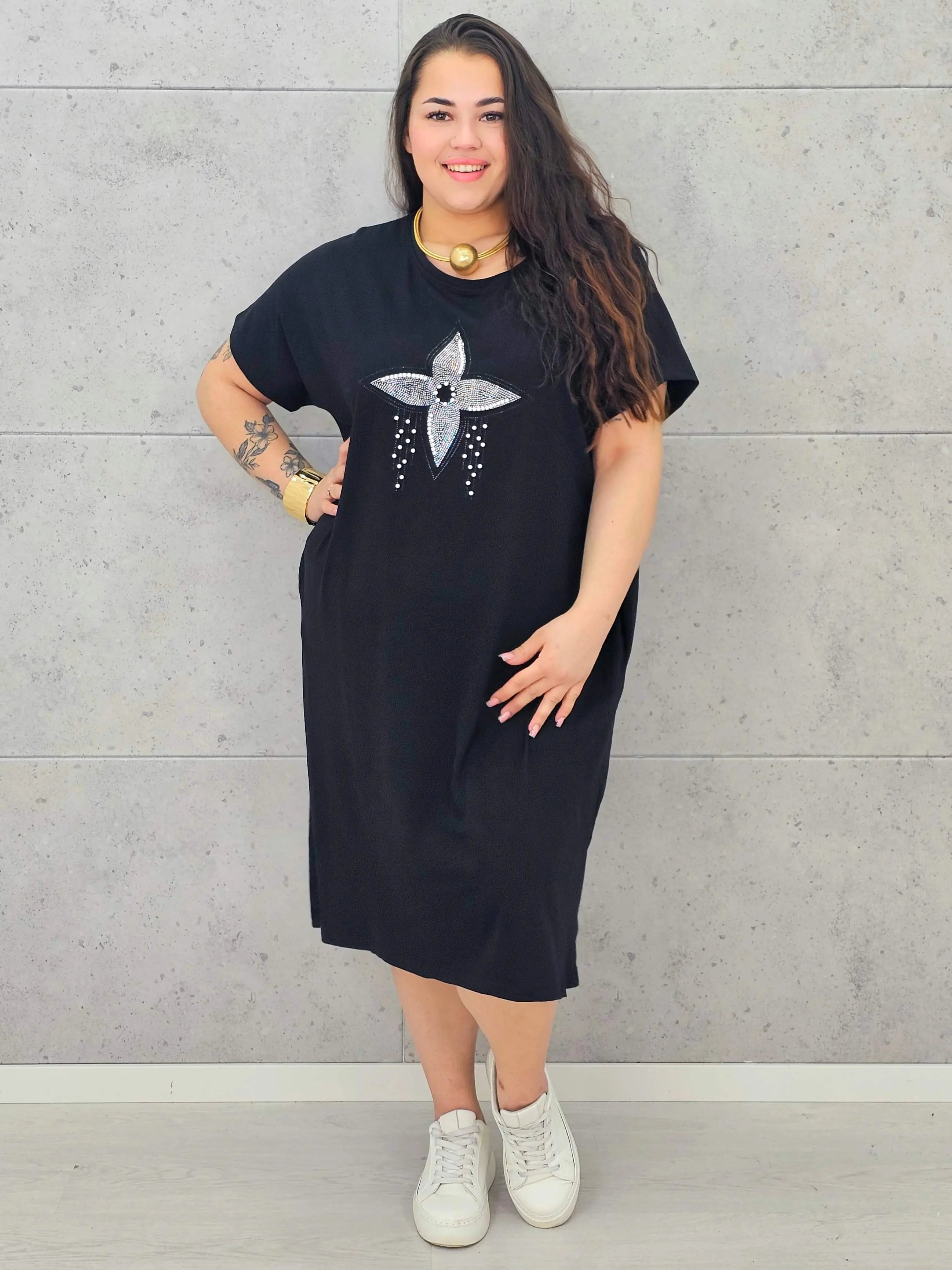 Sukienka plus size z cyrkoniową gwiazdą – wygodna, efektowna, idealna na każdy dzień