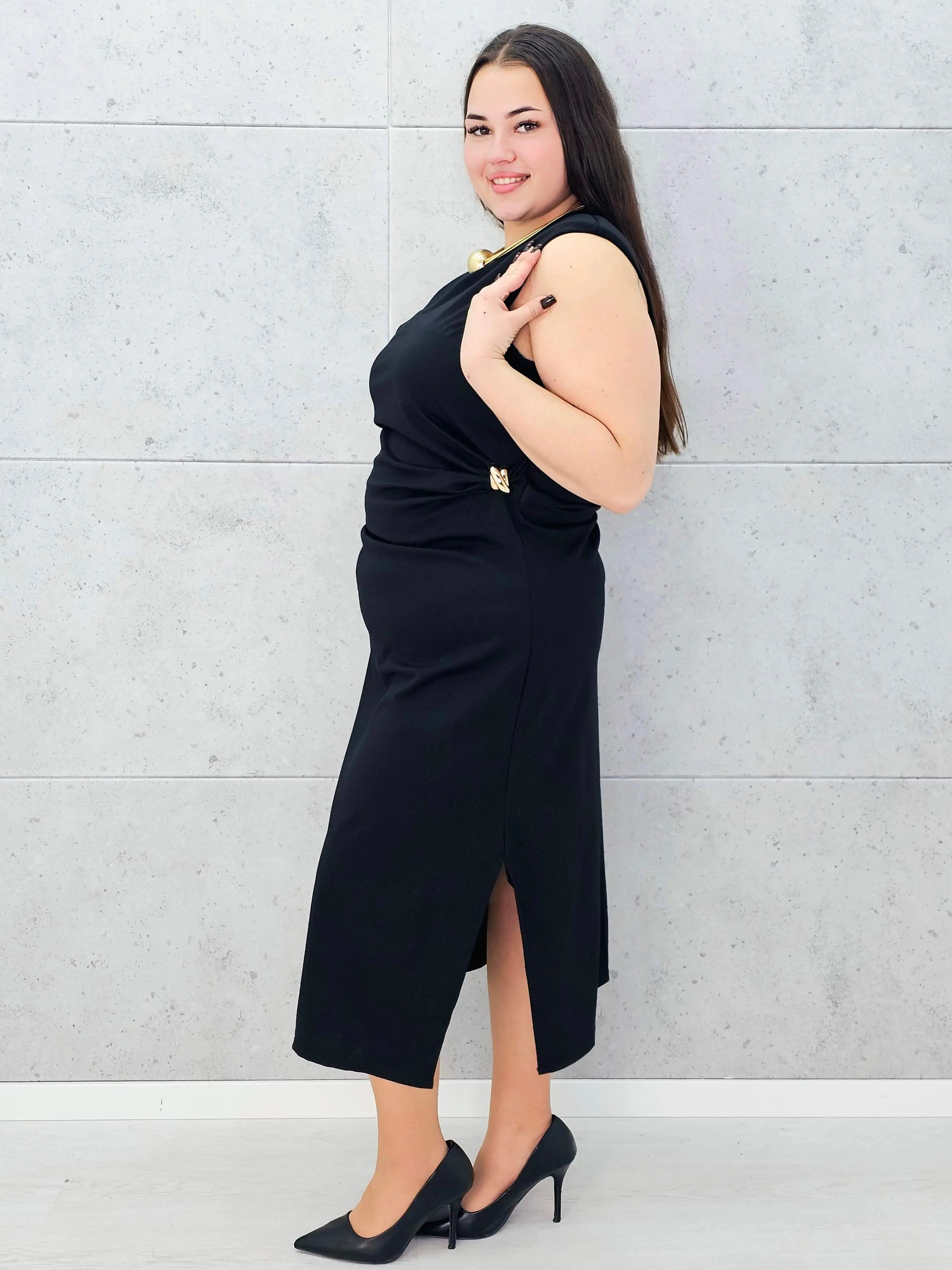 Sukienka z eleganckim marszczeniem i złotą ozdobą