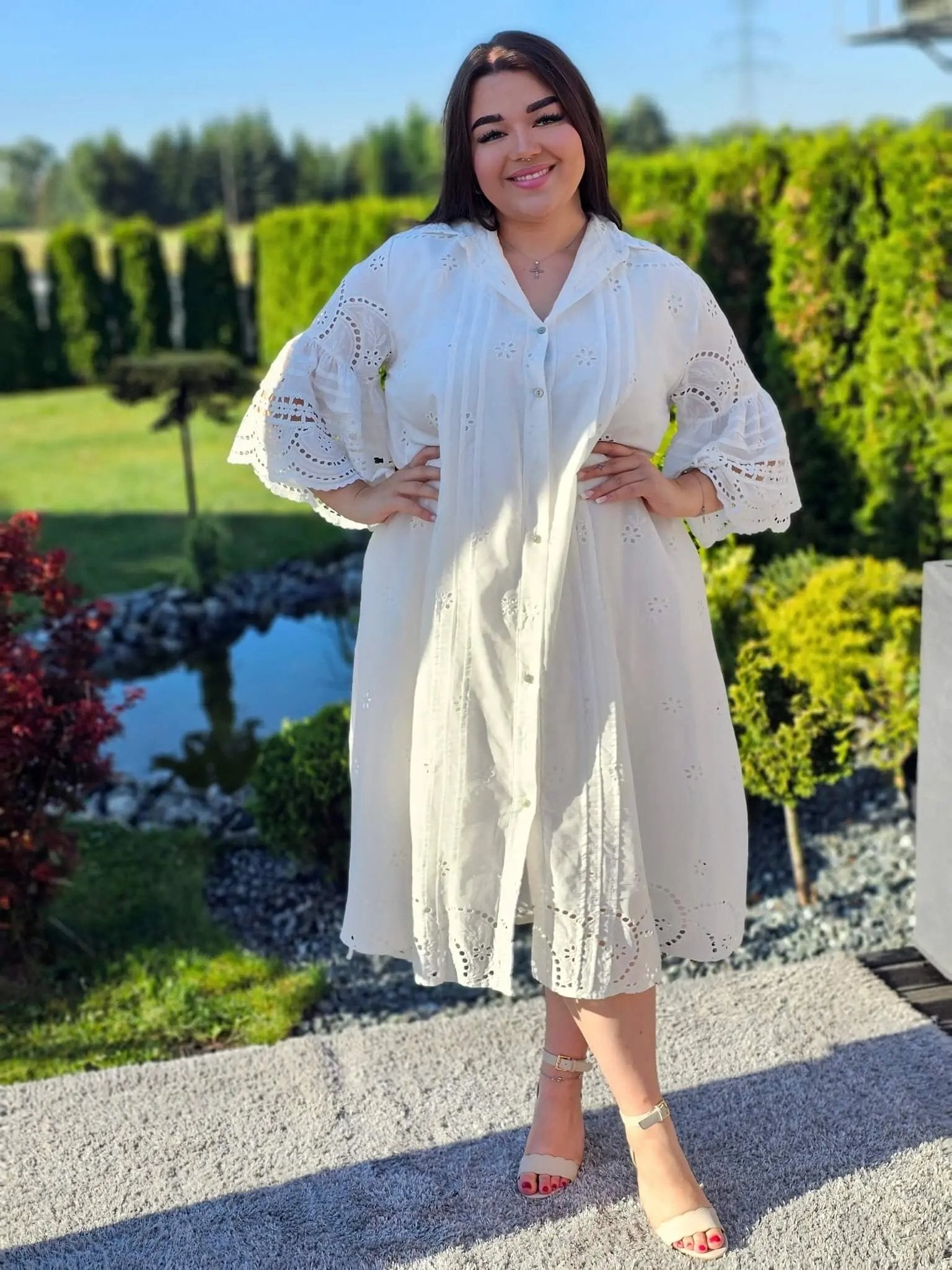 Sukienka koszulowa plus size z haftem angielskim – romantyczna i przewiewna propozycja na lato