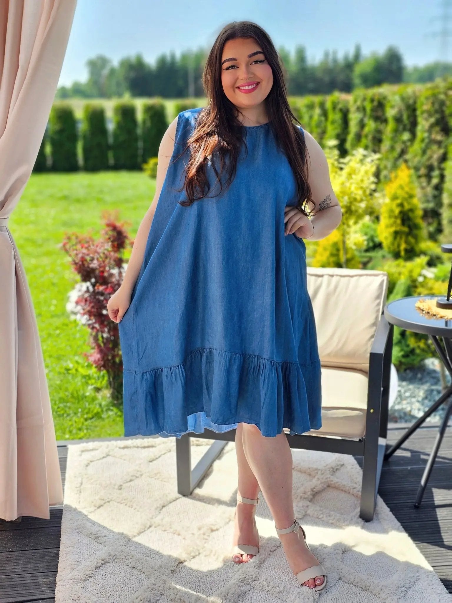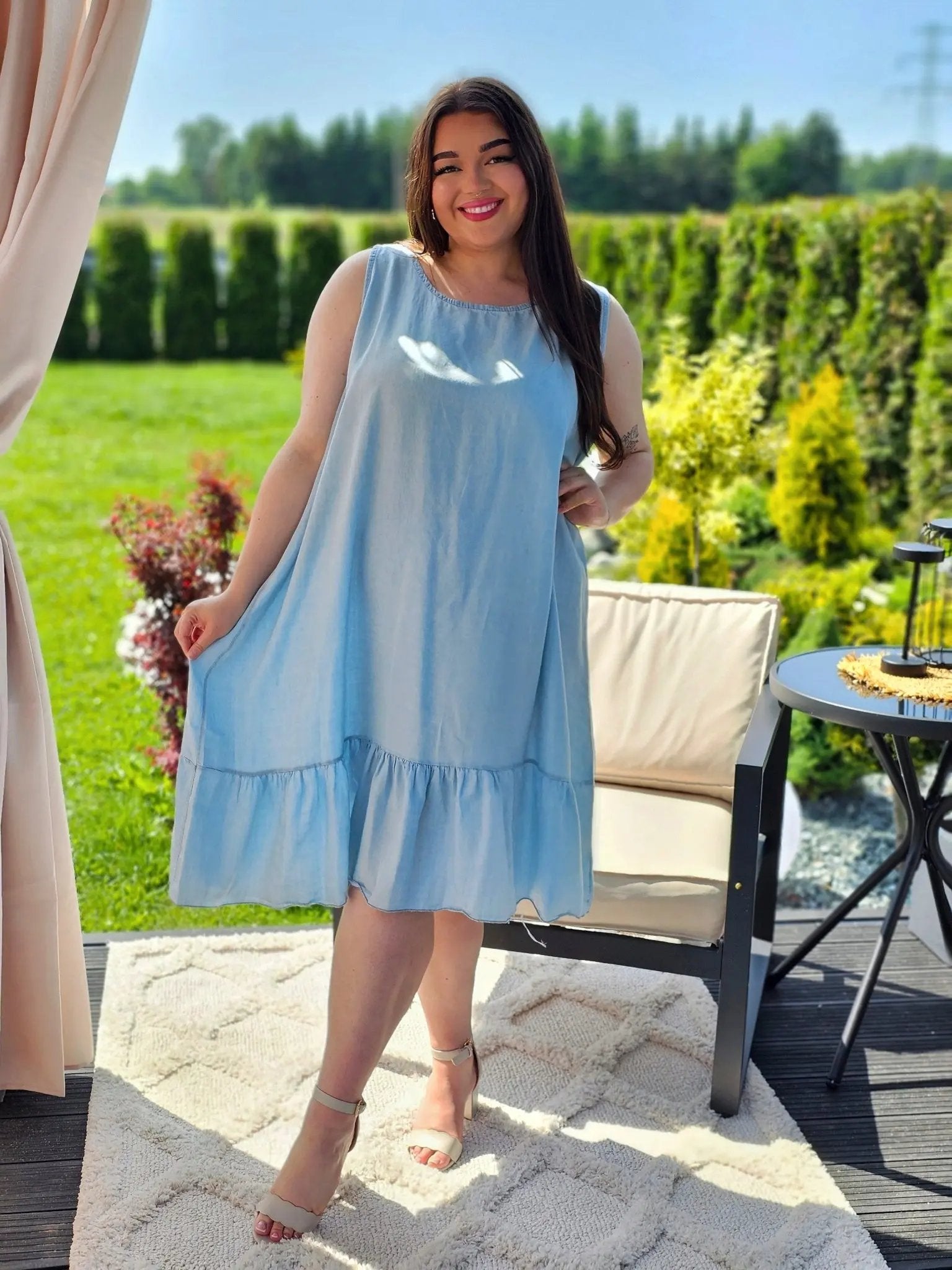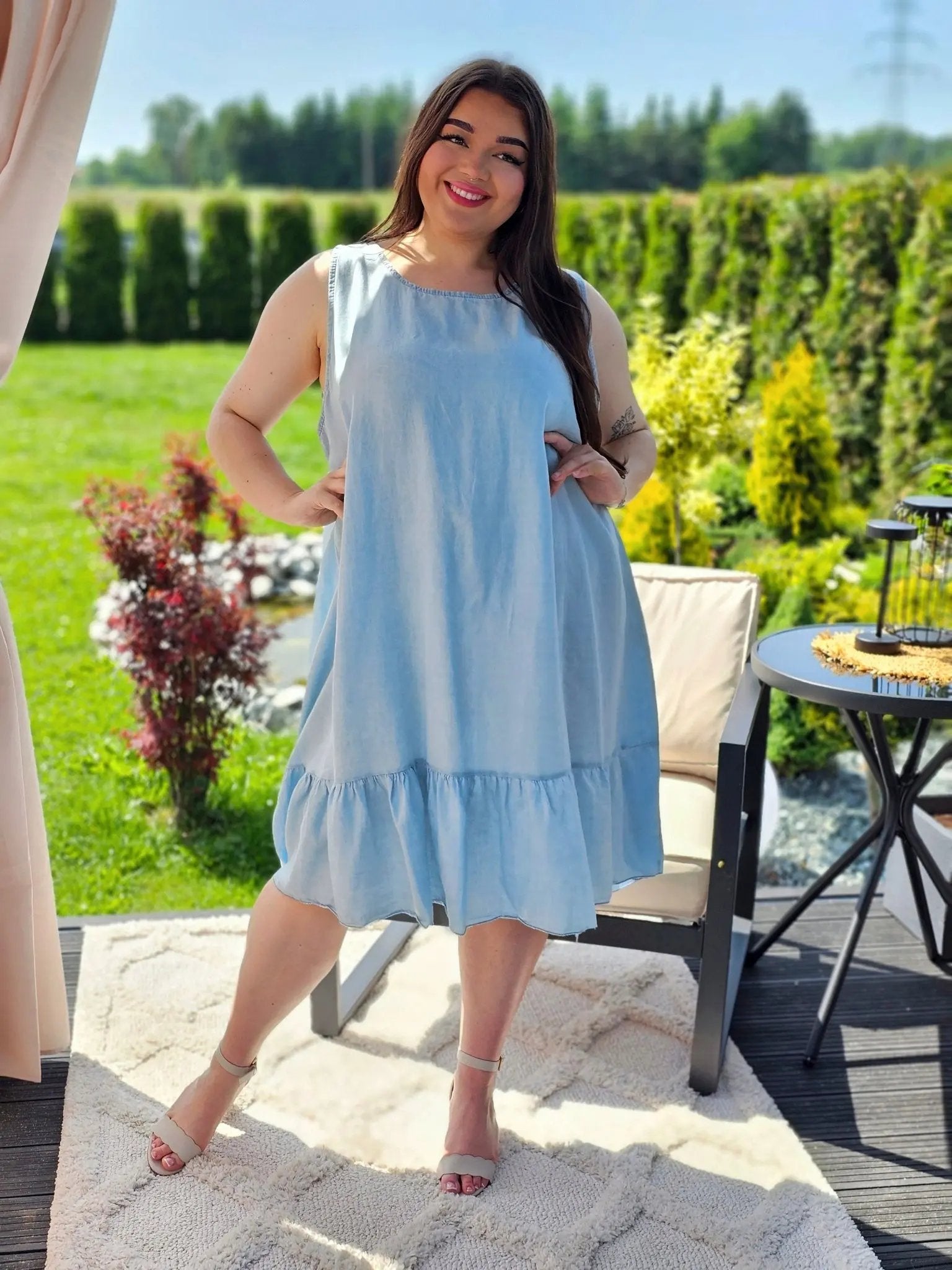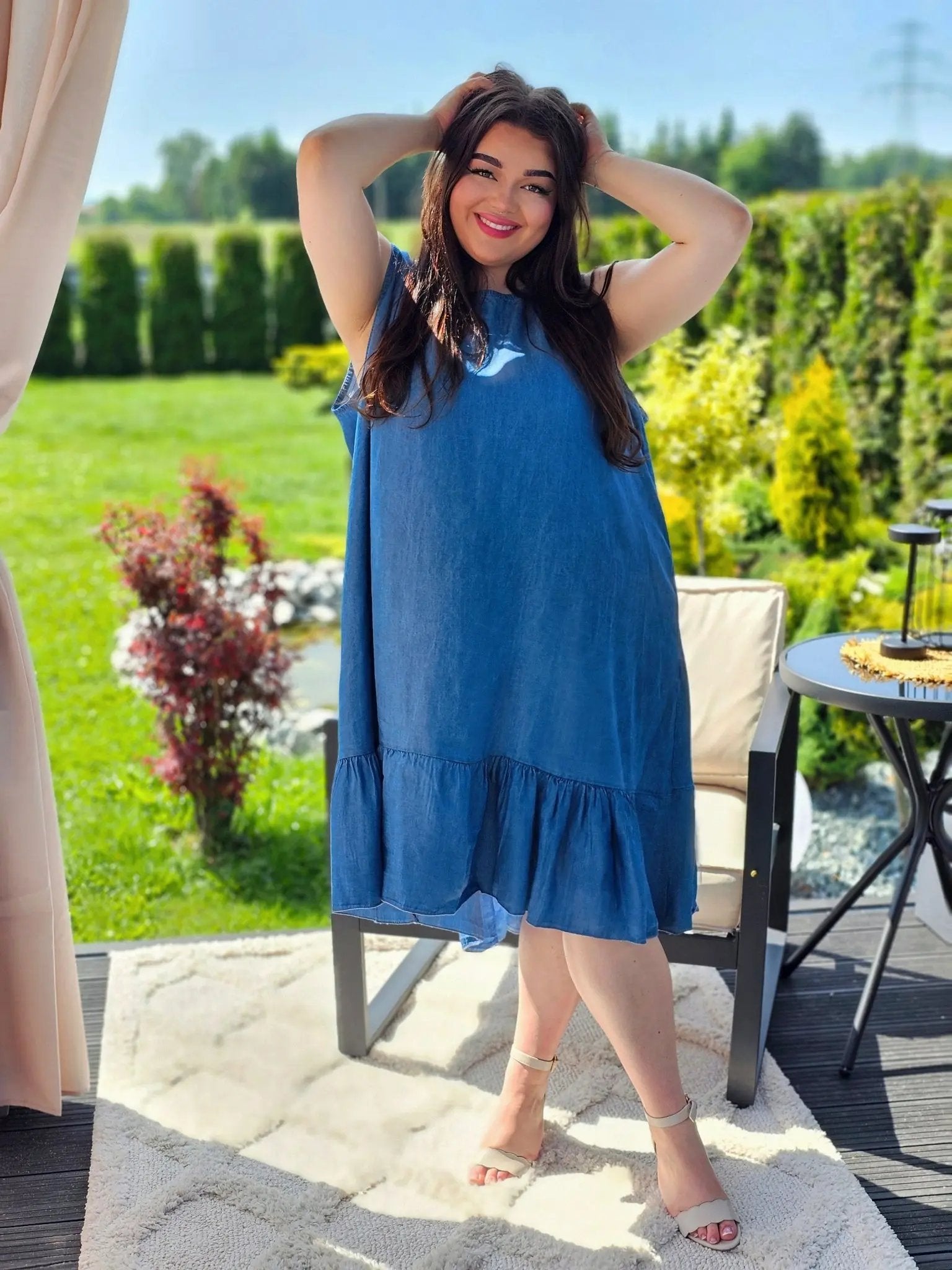 Urocza sukienka z lekkiego jeansu to kwintesencja kobiecej lekkości i stylu.
