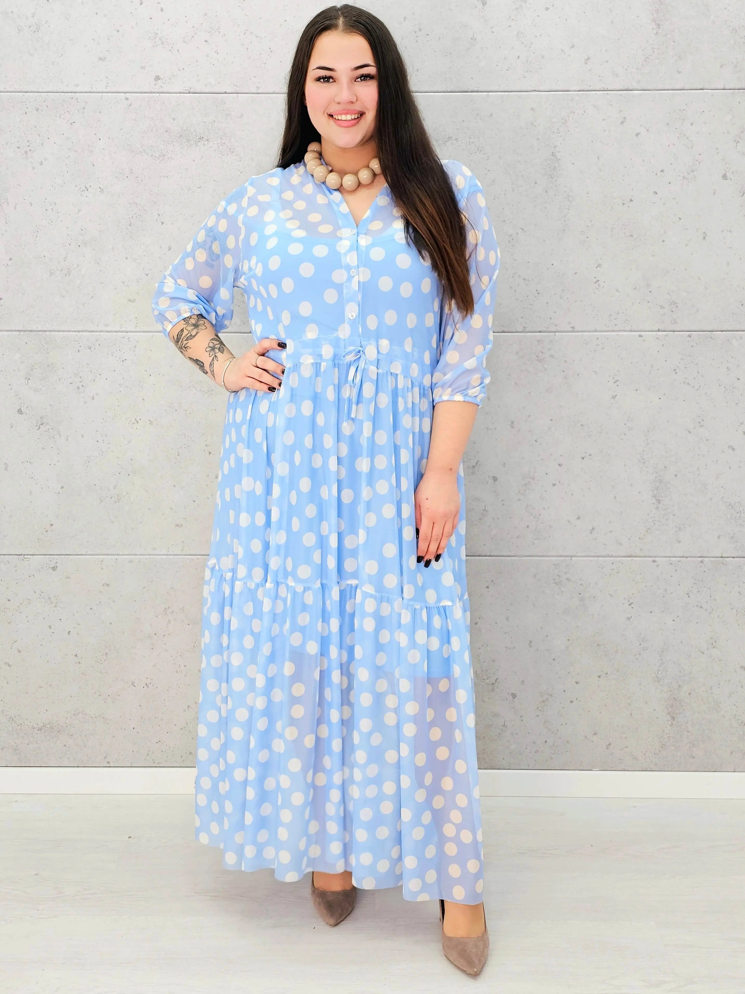 Szyfonowa zwiewna sukienka maxi plus size w groszki – kobiecy urok i wygoda