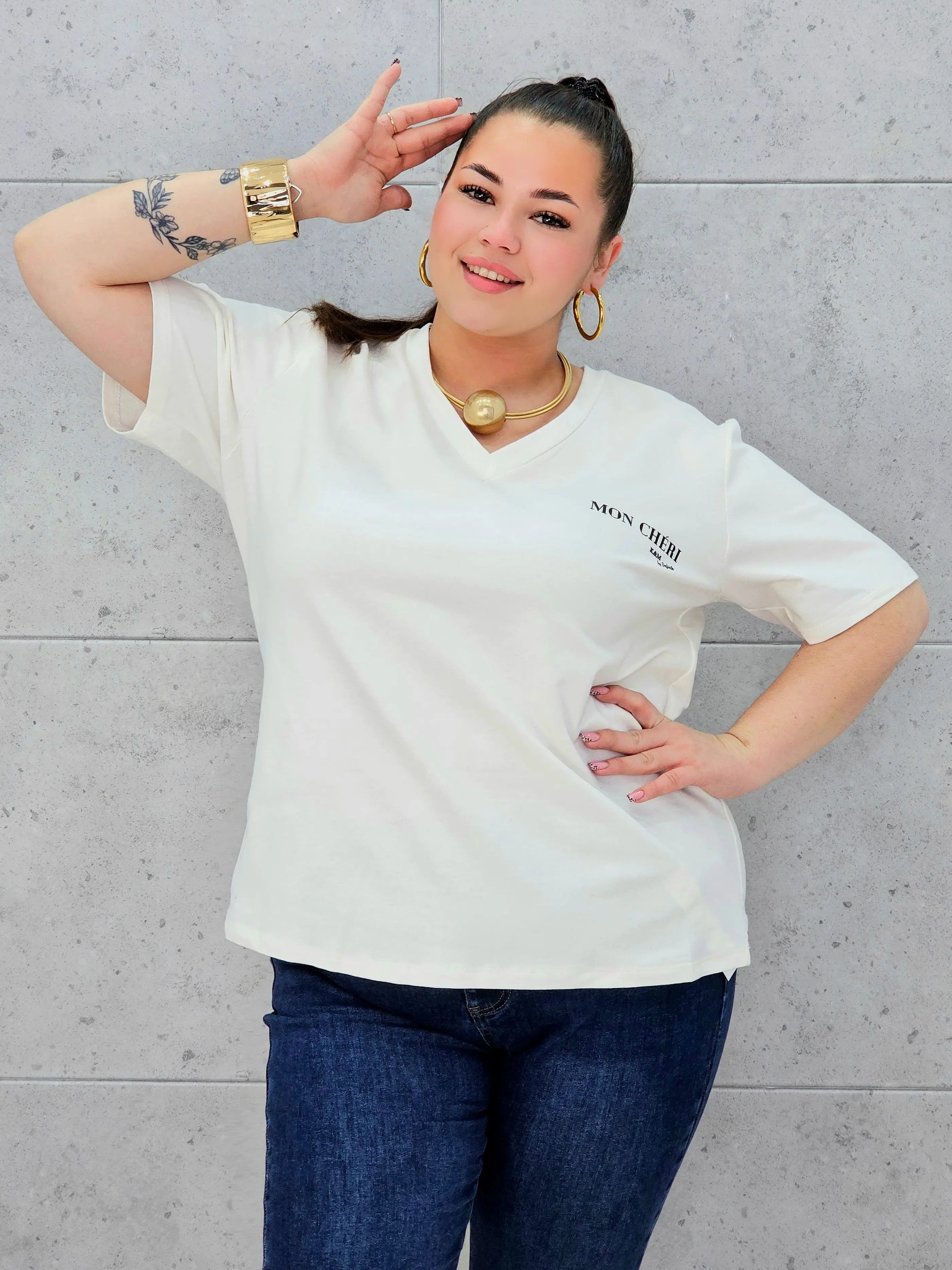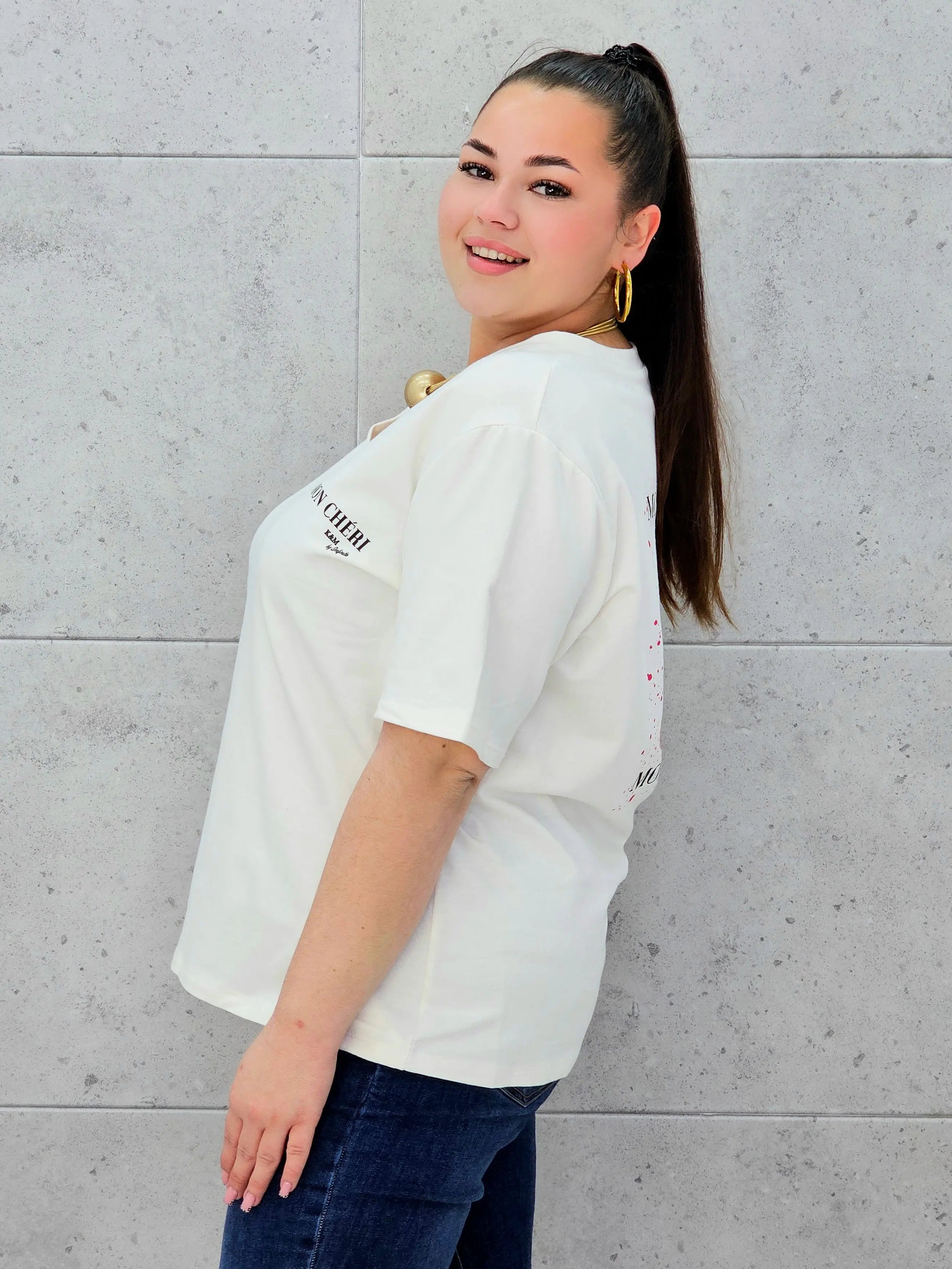 T-shirt plus size z nadrukami COLORFUL LIPS i MON CHÉRI to połączenie kobiecości, wygody i modowego charakteru, idealne dla kobiet noszących rozmiar XXL. Obydwa modele wykonano z miękkiej, przyjemnej w dotyku bawełnianej tkaniny, która układa się na sylwetce swobodnie, zapewniając komfort noszenia przez cały dzień.