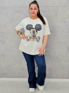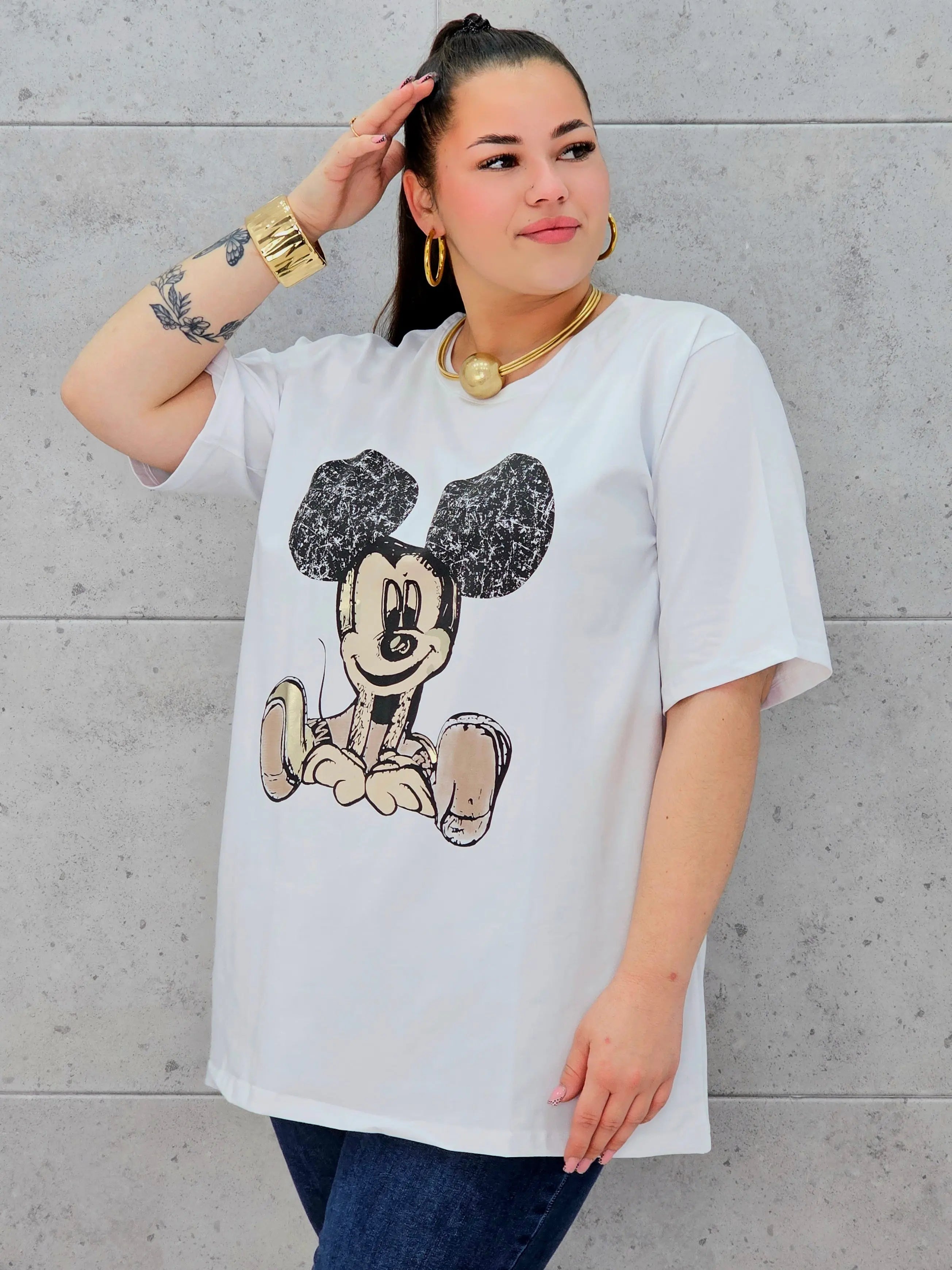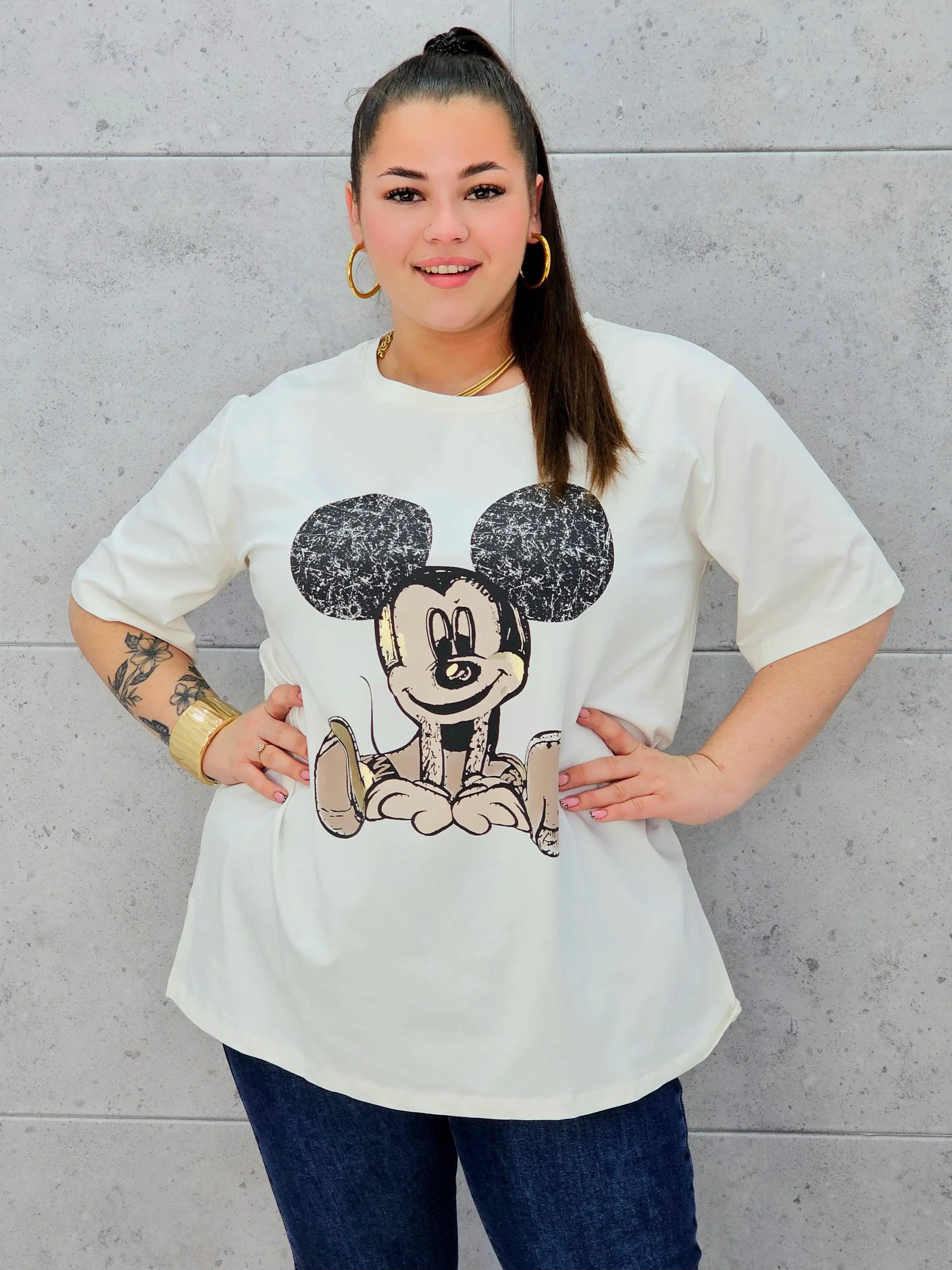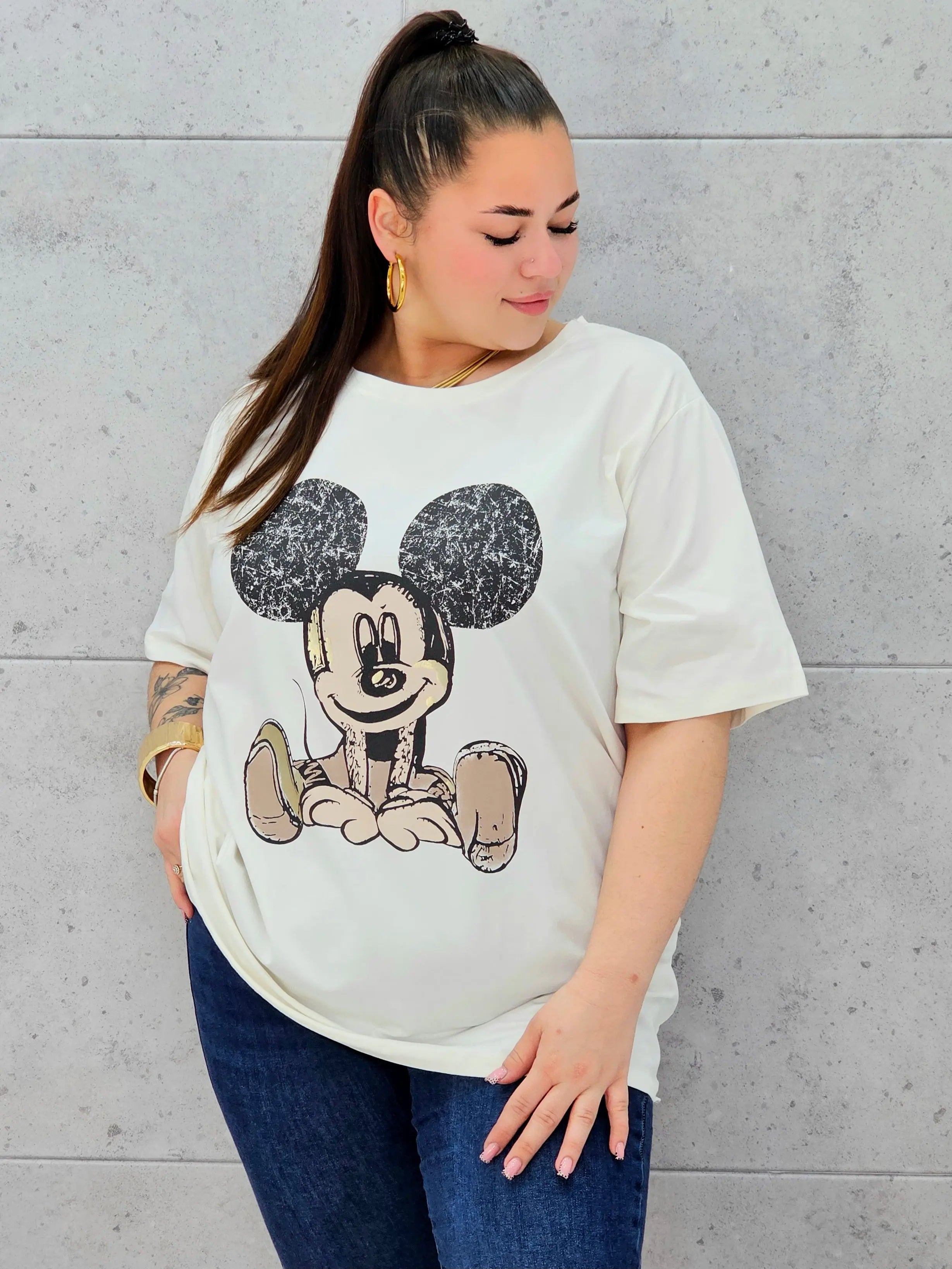 Luźny, oversize’owy krój pięknie układa się na sylwetce, nie opinając i nie podkreślając partii, które chcemy zamaskować. Uroczy nadruk w stylu retro nadaje bluzce wyjątkowego charakteru, a zaokrąglony dekolt i klasyczna długość sprawiają, że t-shirt doskonale sprawdzi się zarówno w codziennych stylizacjach z jeansami, jak i w bardziej luźnych zestawach z legginsami. To model, który idealnie wpisuje się w aktualne trendy mody plus size, łącząc lekkość, wygodę i modną grafikę.