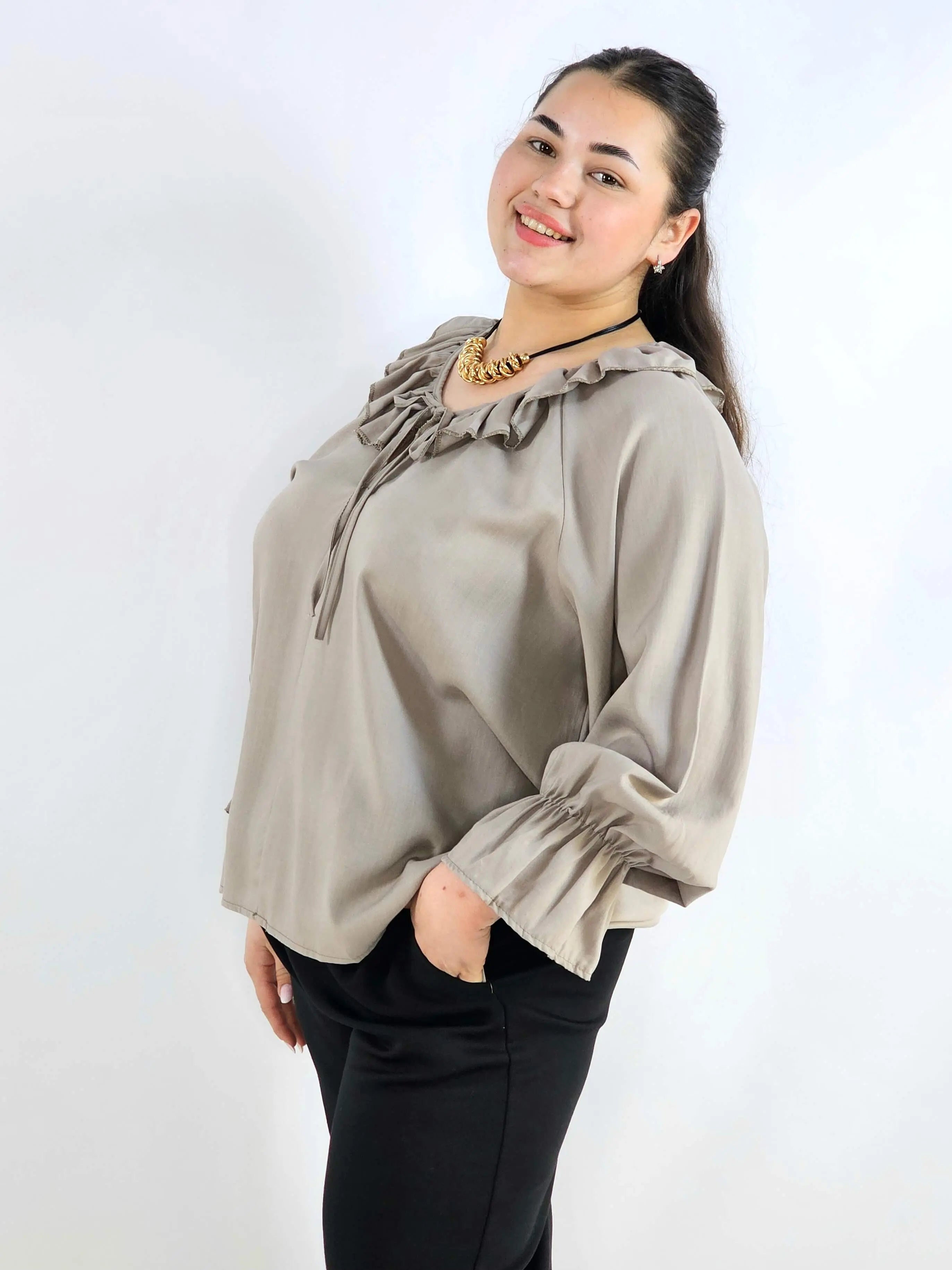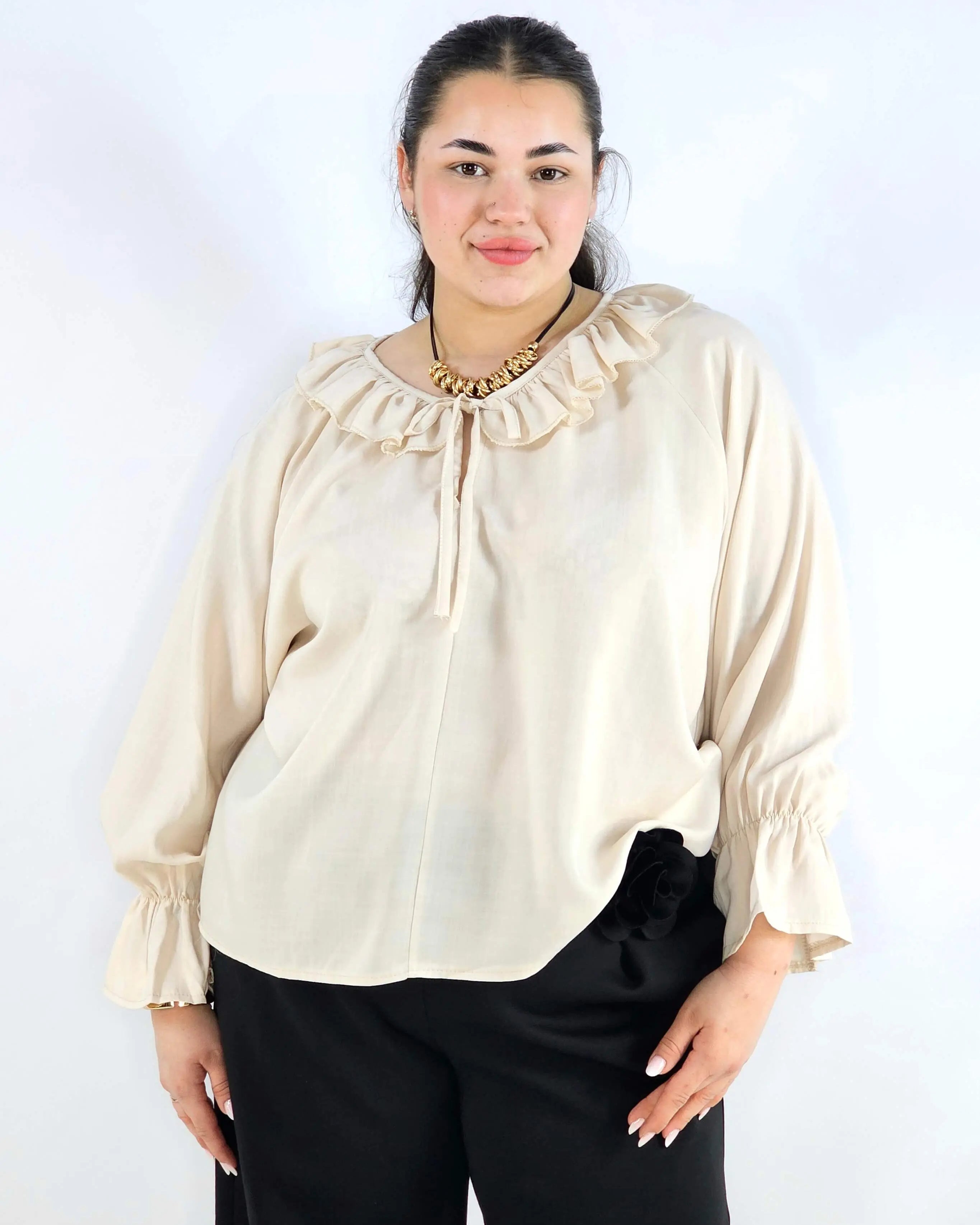 Bluzka plus size z falbaną – romantyczna elegancja w lekkim wydaniu