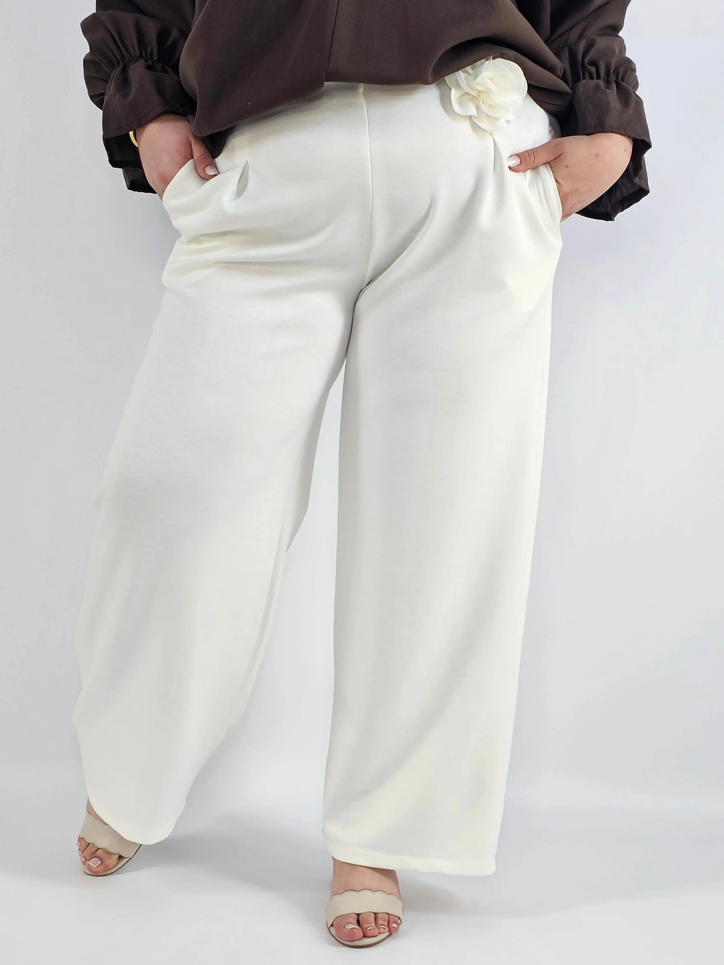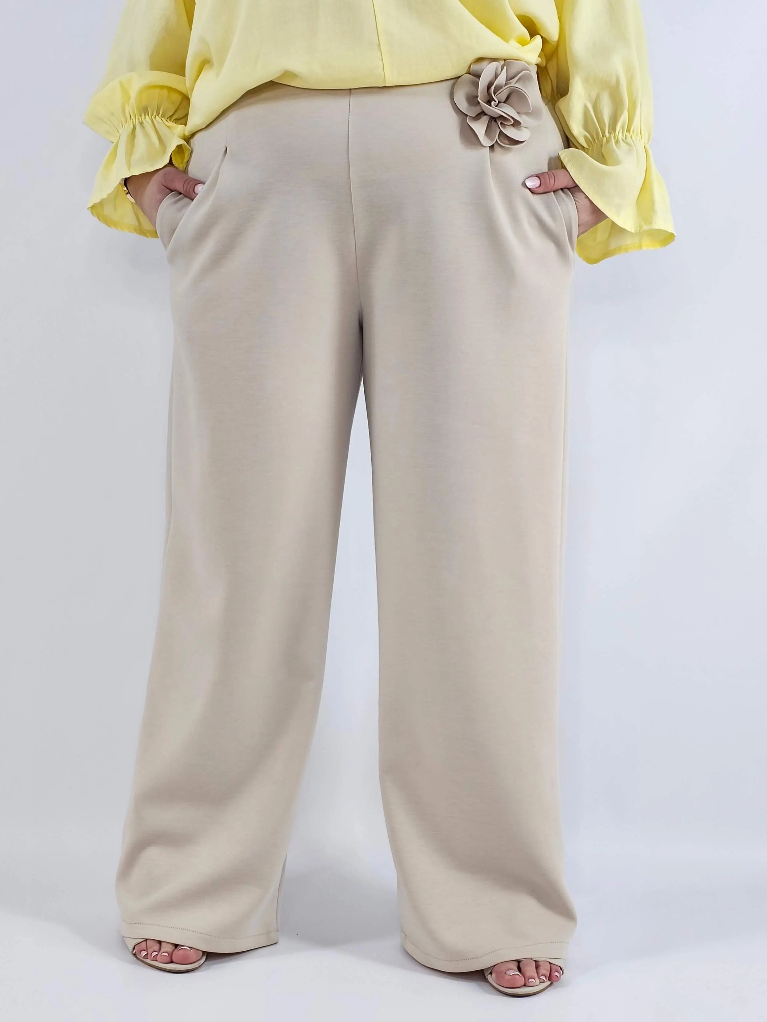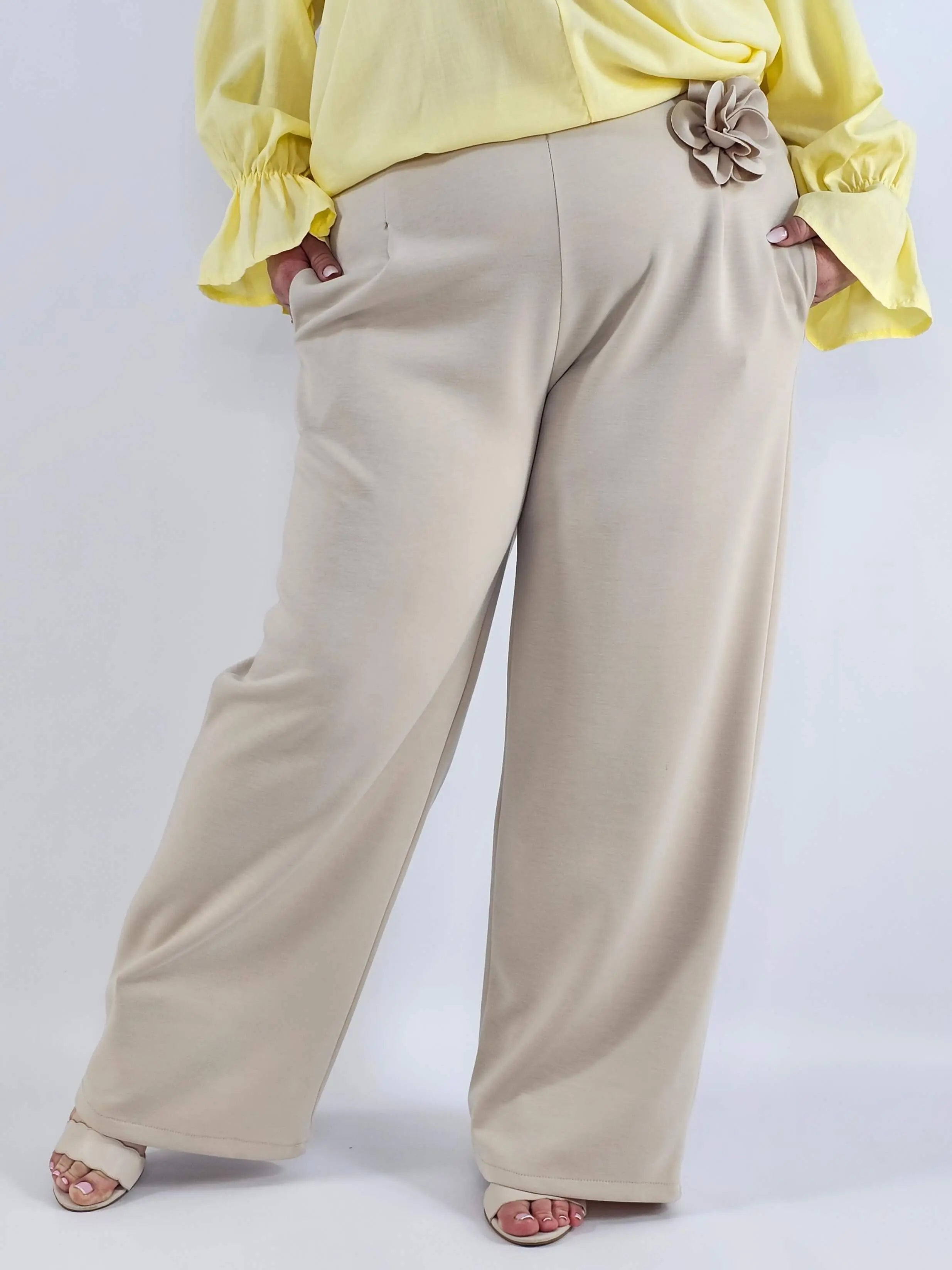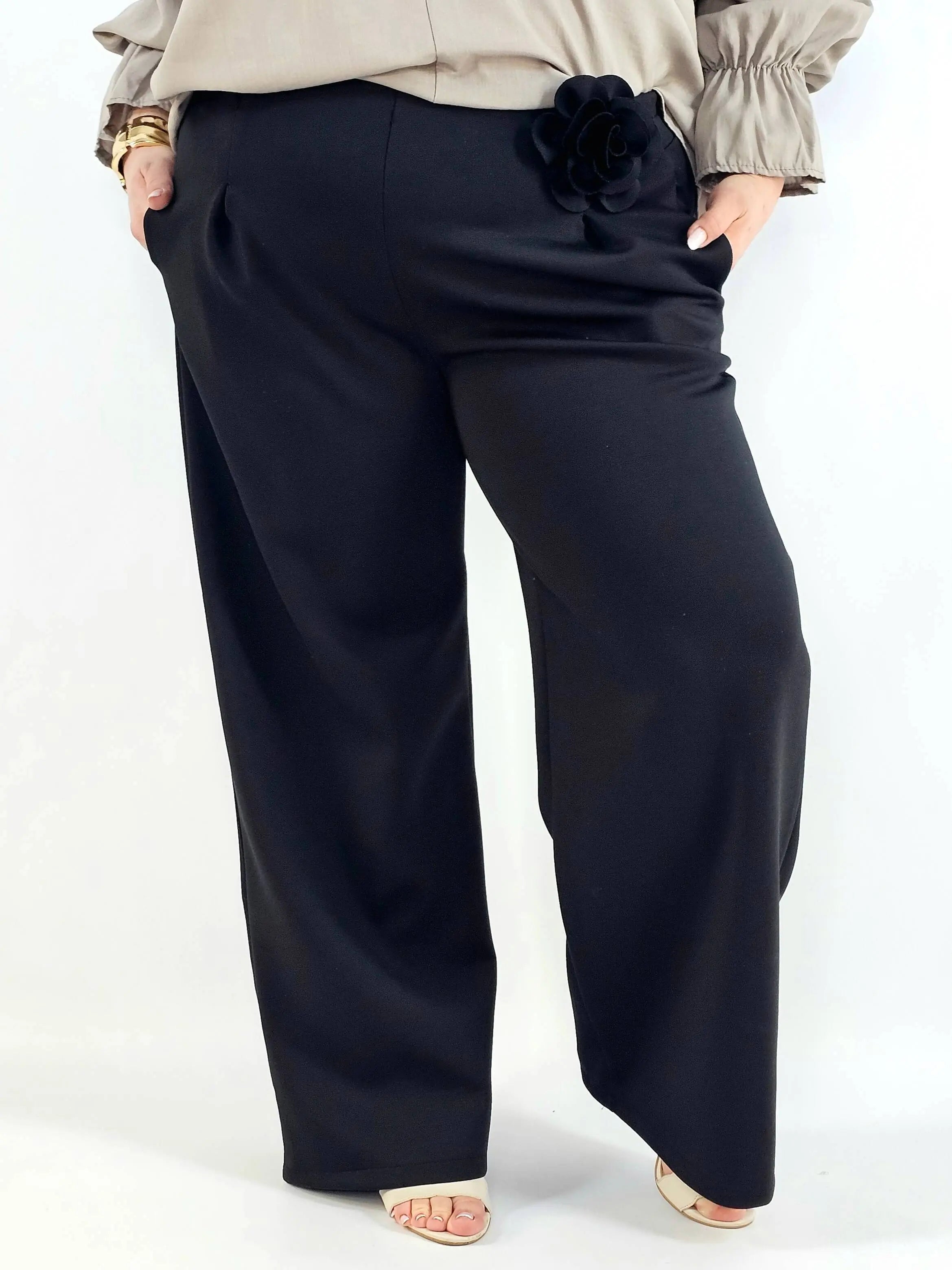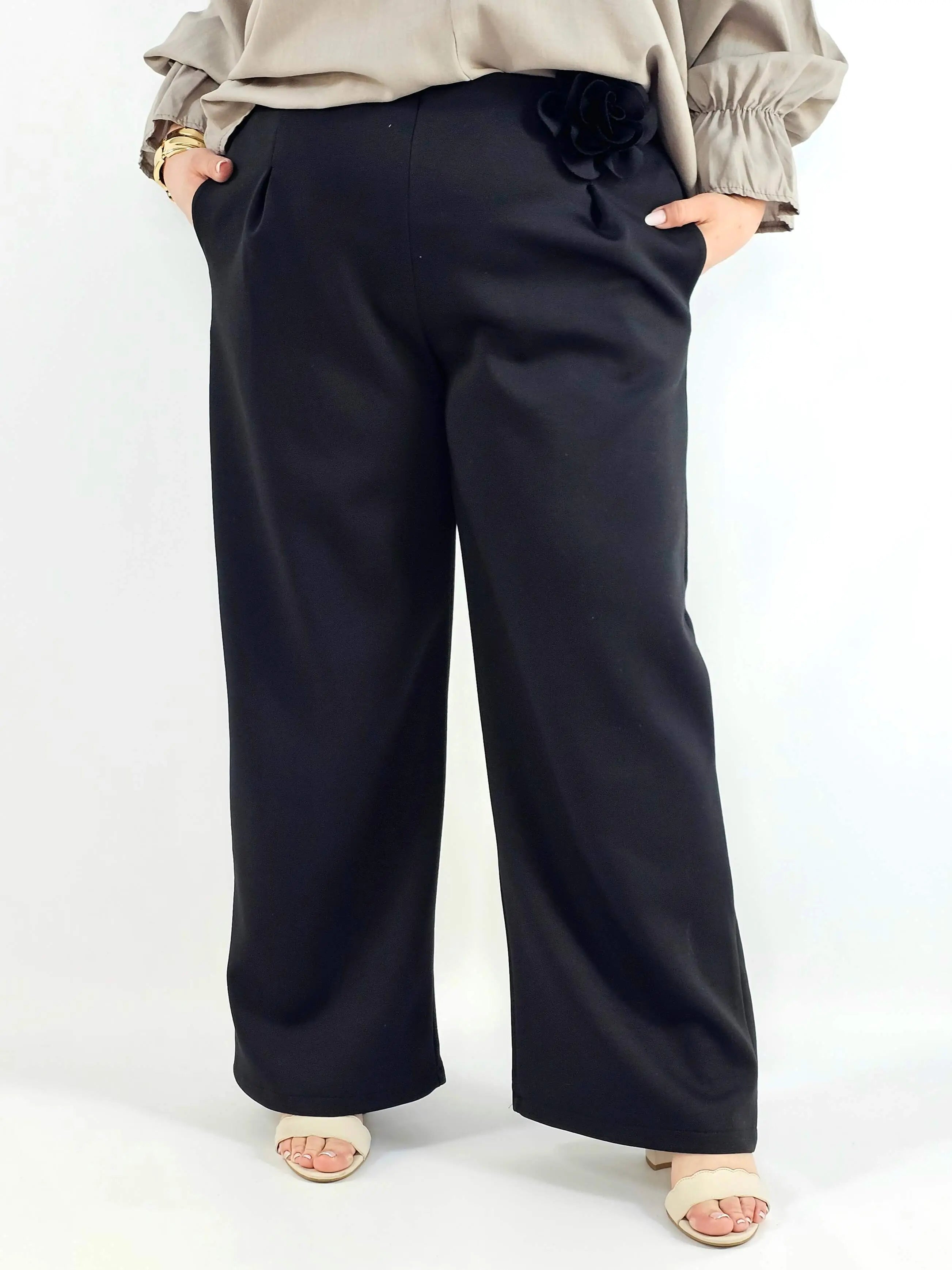 Spodnie plus size szerokie z aplikacją – elegancja i wygoda w jednym