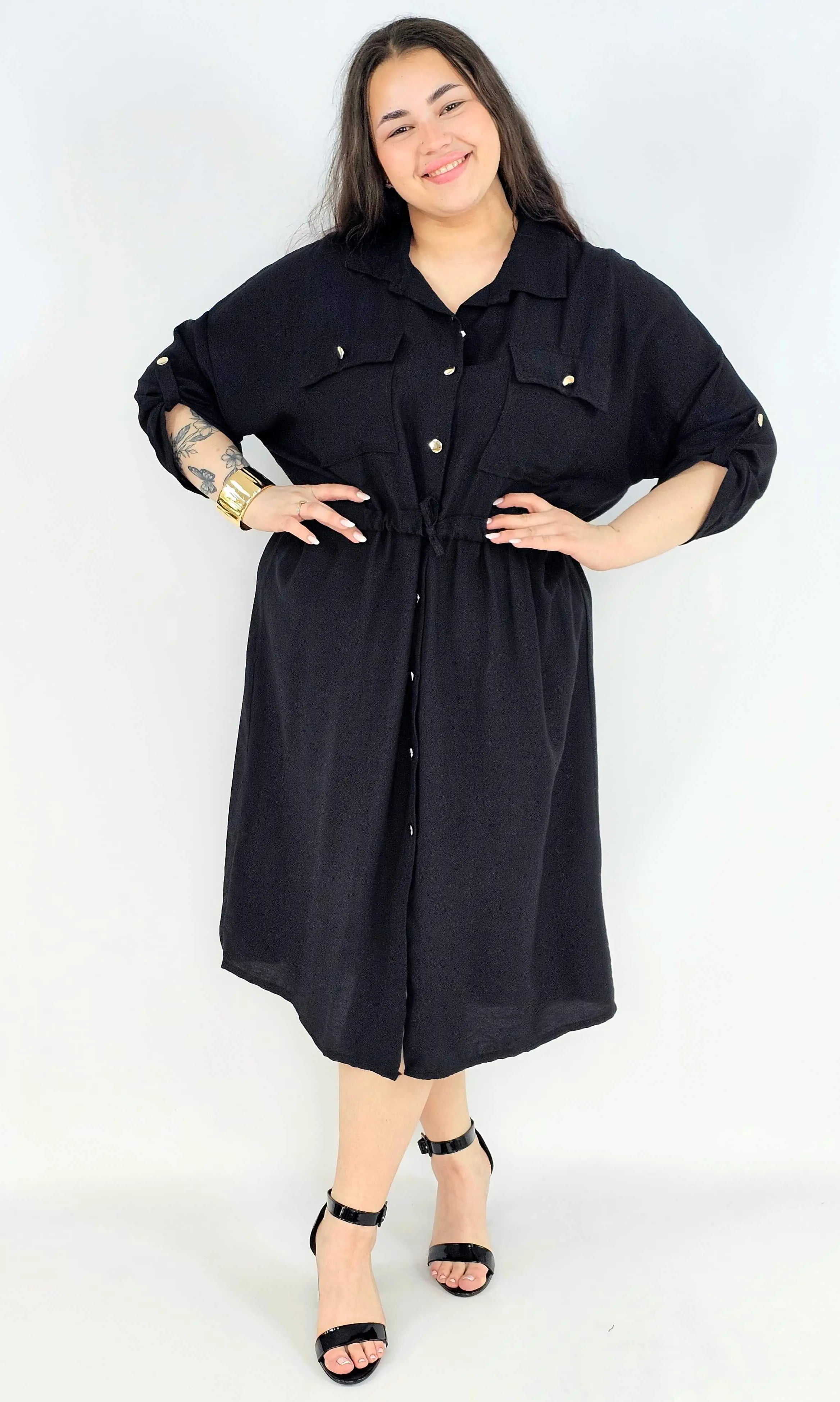Płaszcz plus size dwurzędowy z paskiem – elegancki płaszcz XXL