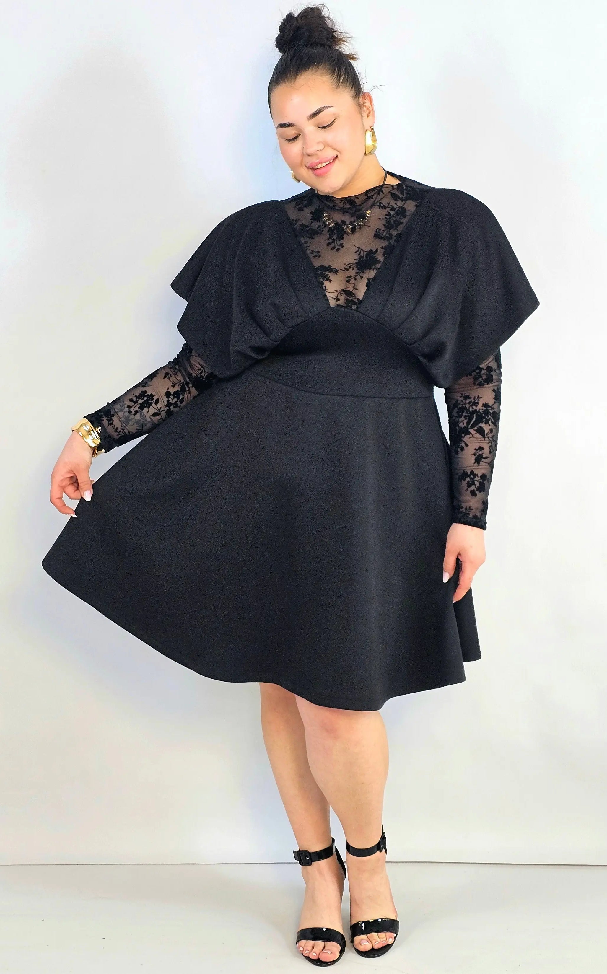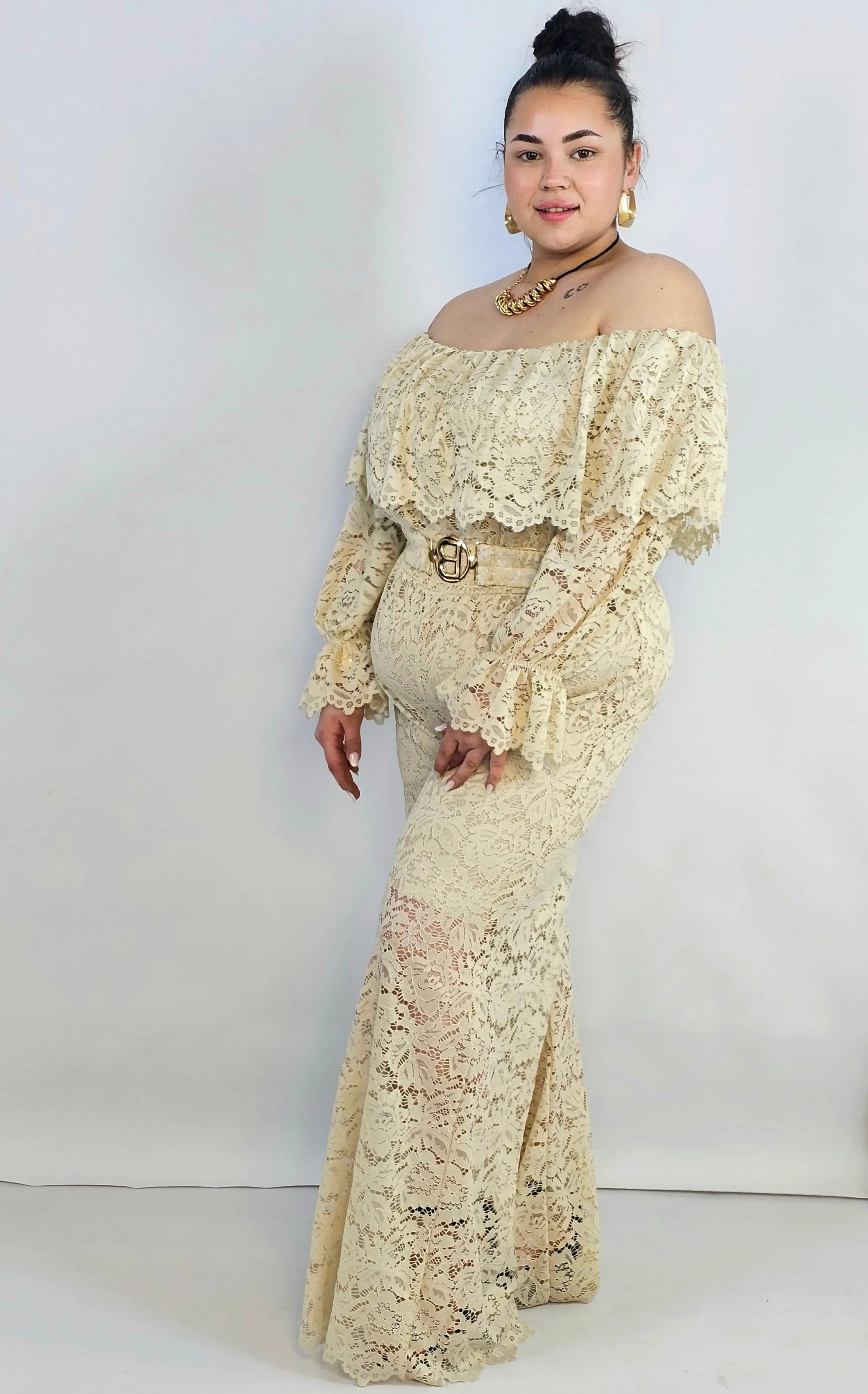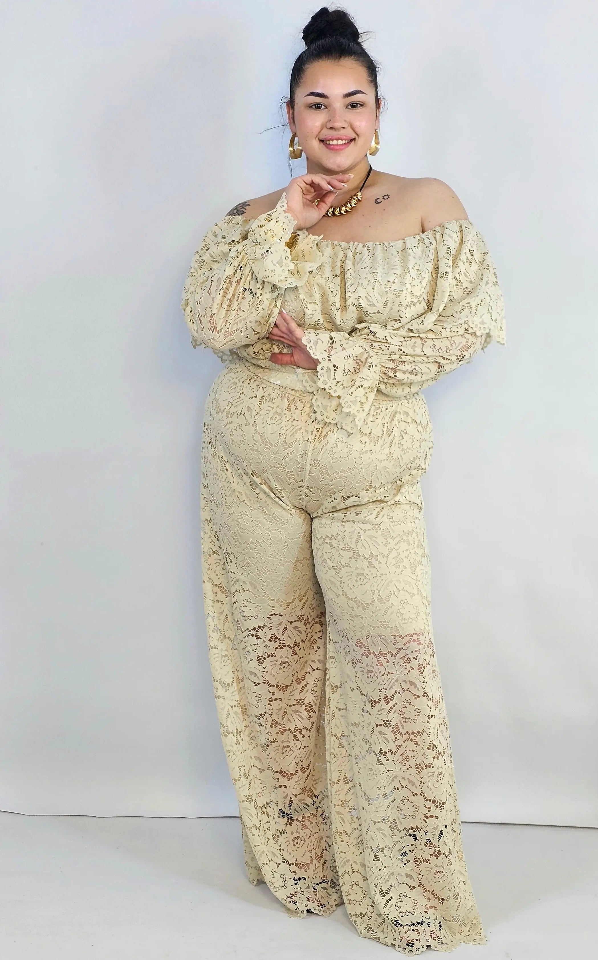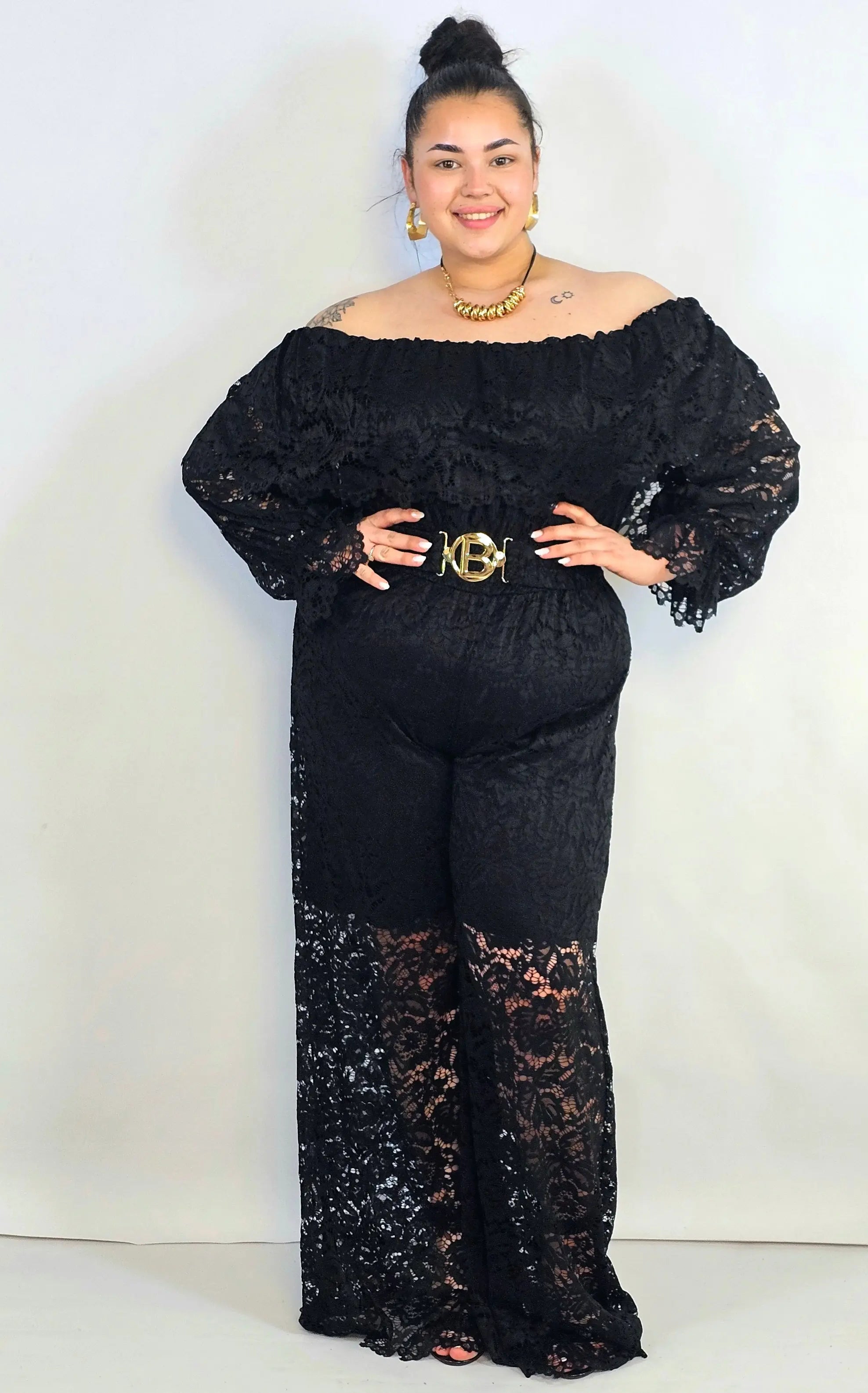 Kombinezon plus size koronkowy z hiszpańskim dekoltem – elegancja XXL