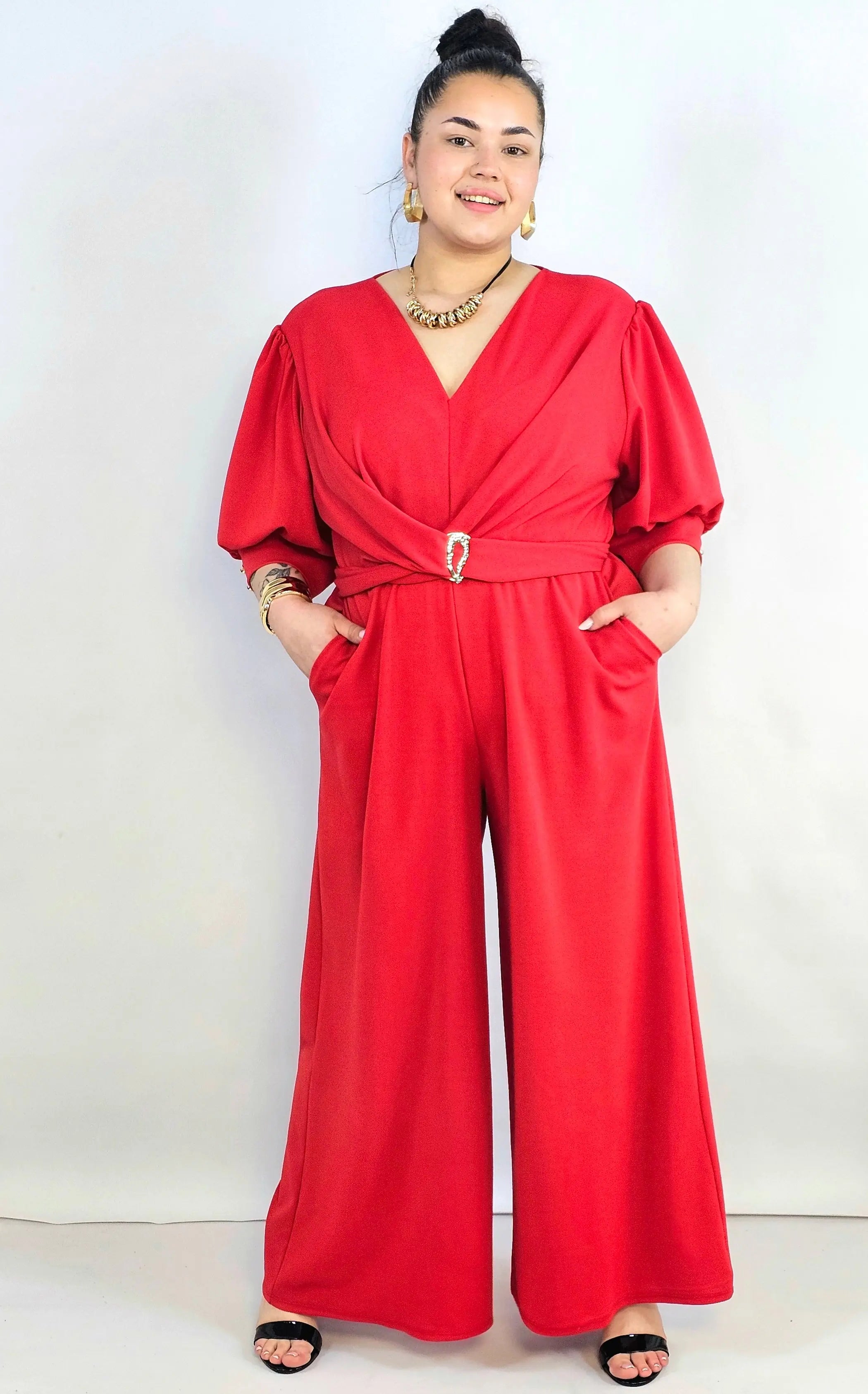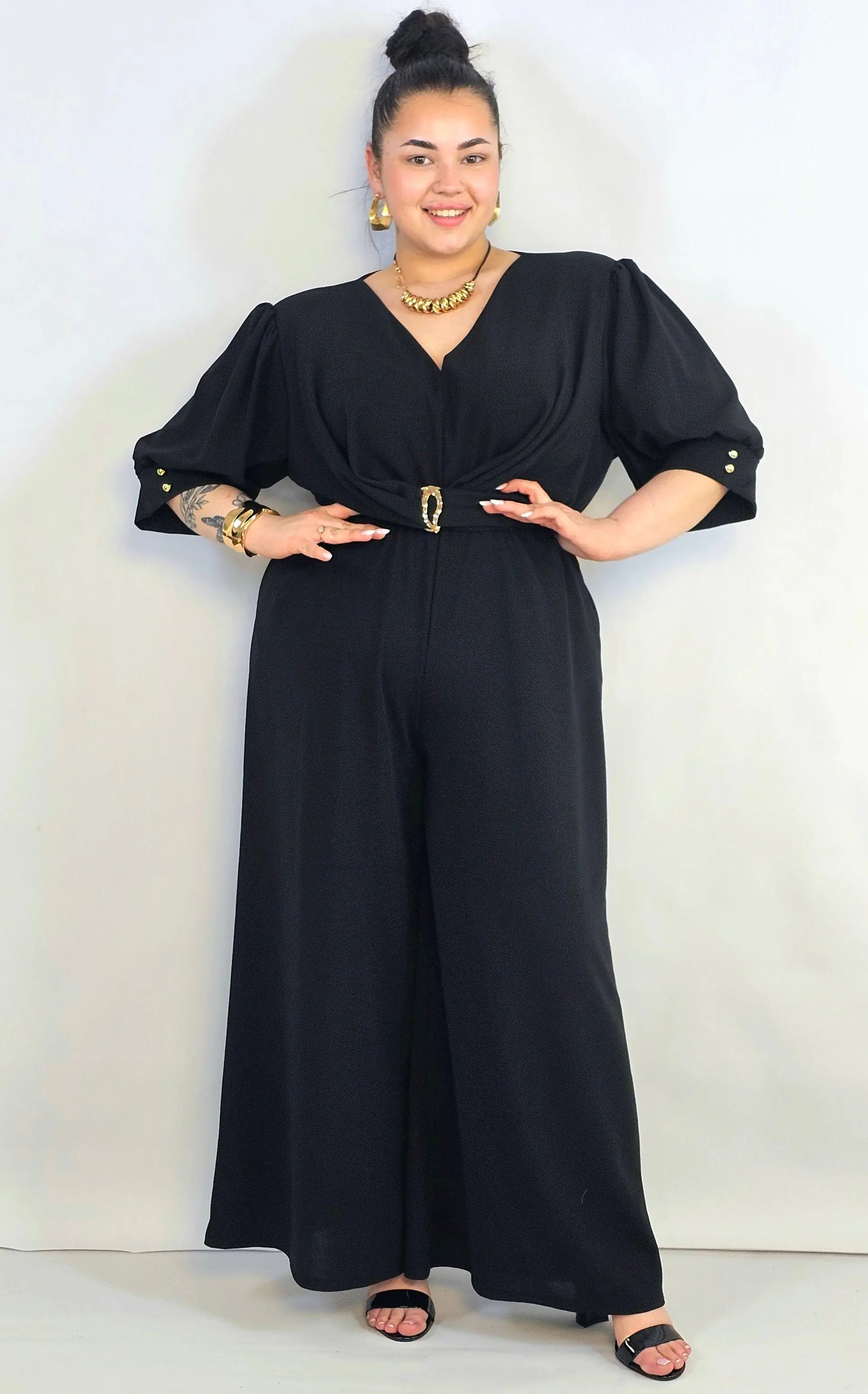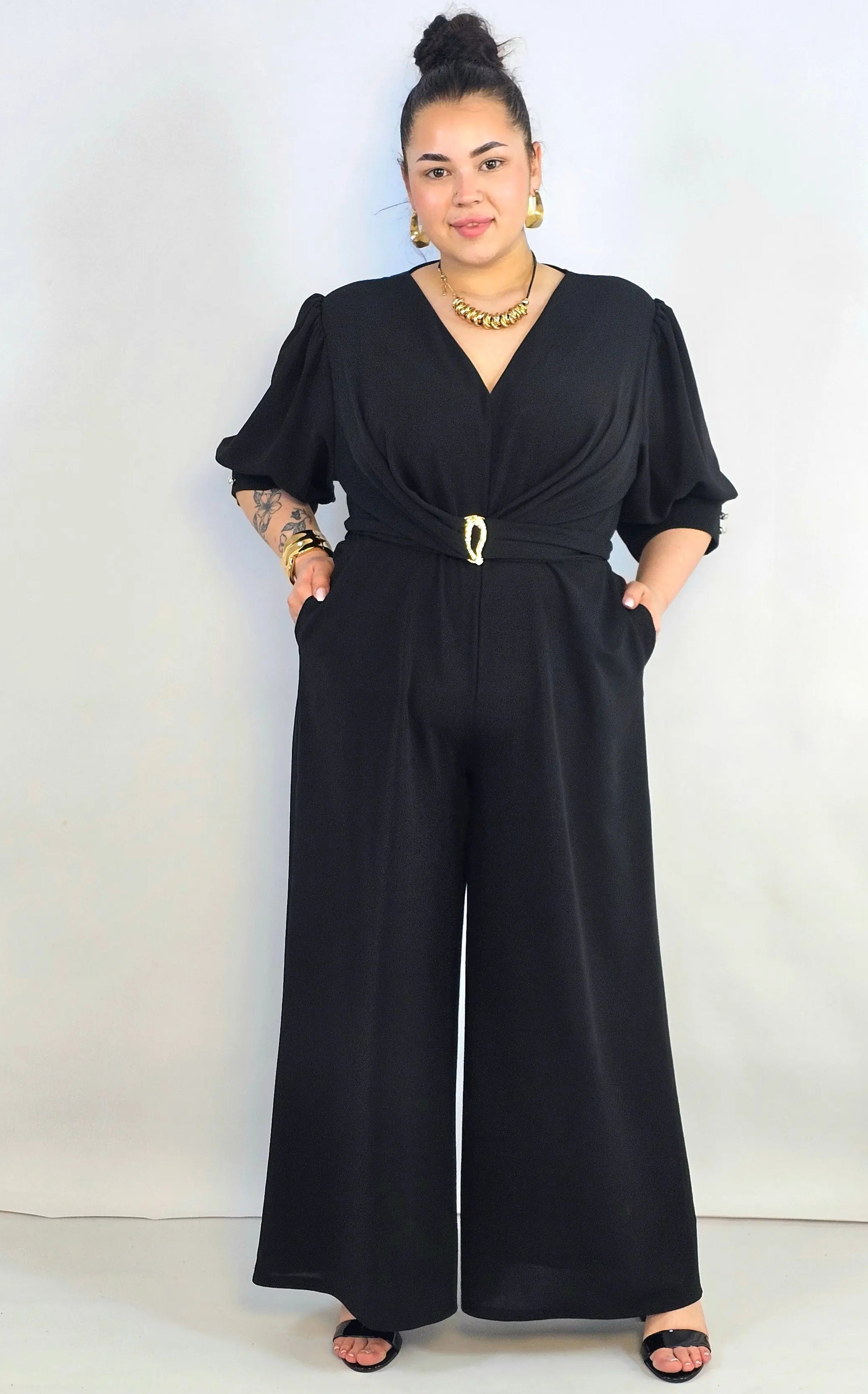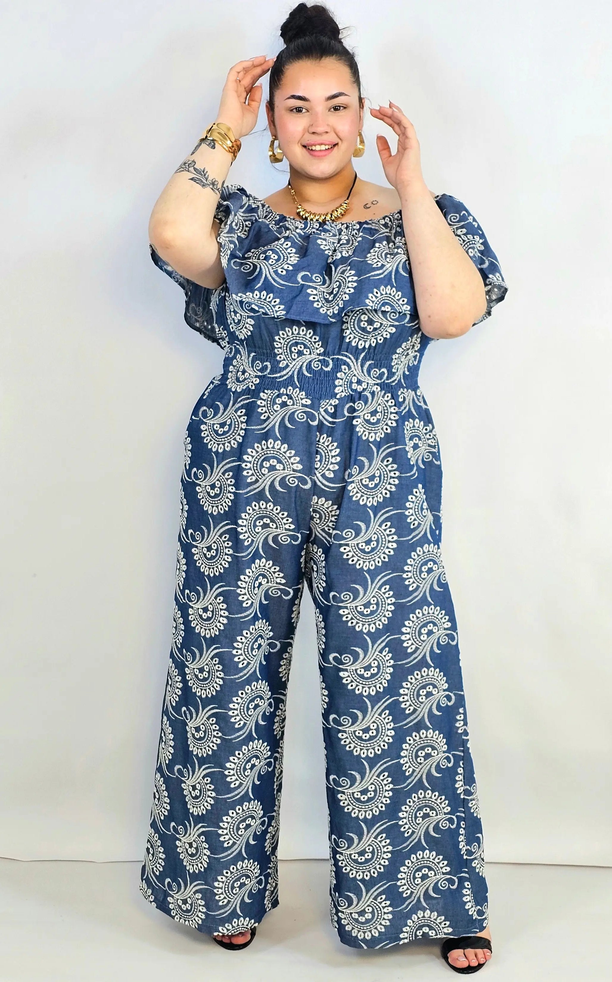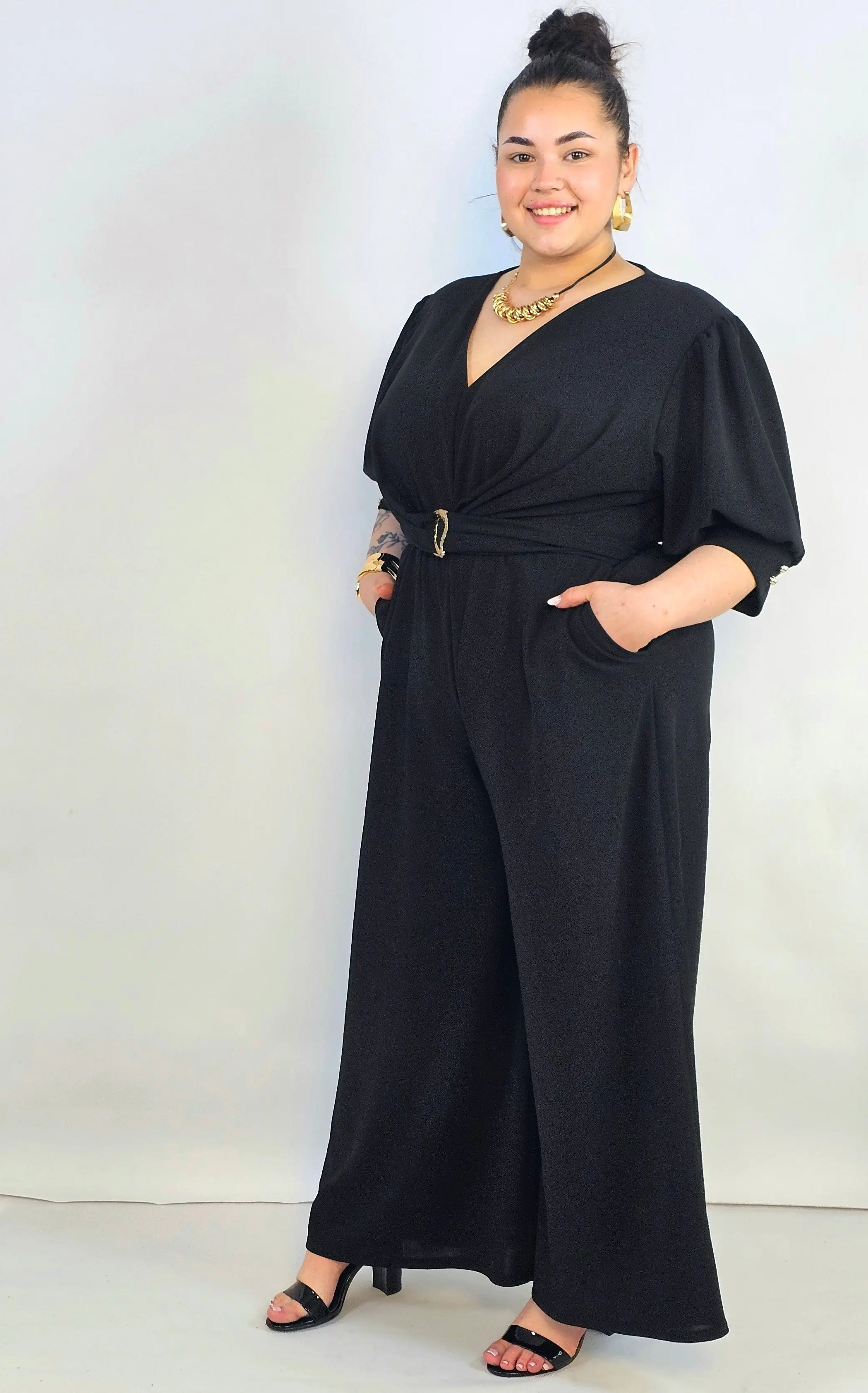 Kombinezon plus size koronkowy z hiszpańskim dekoltem – elegancja XXL