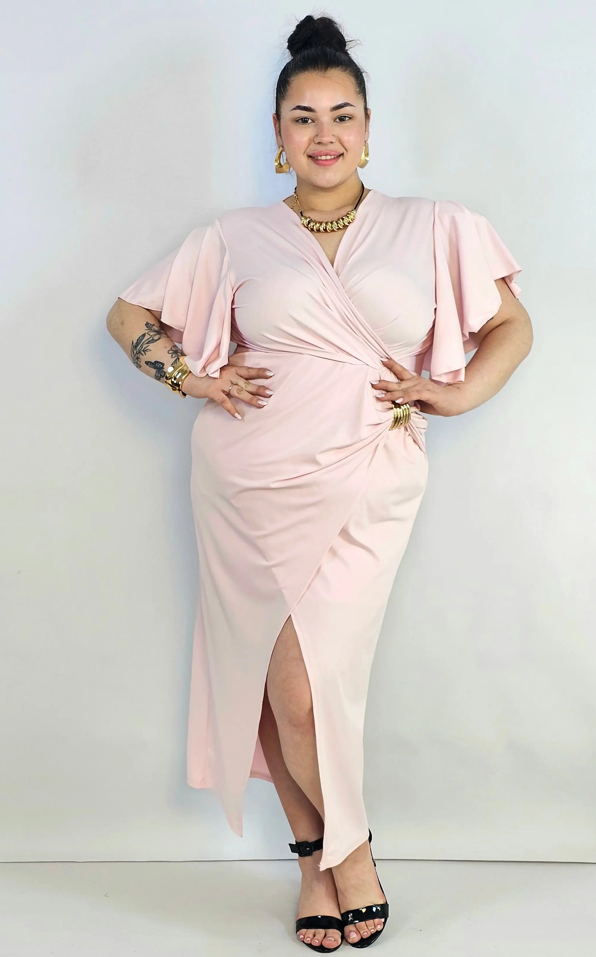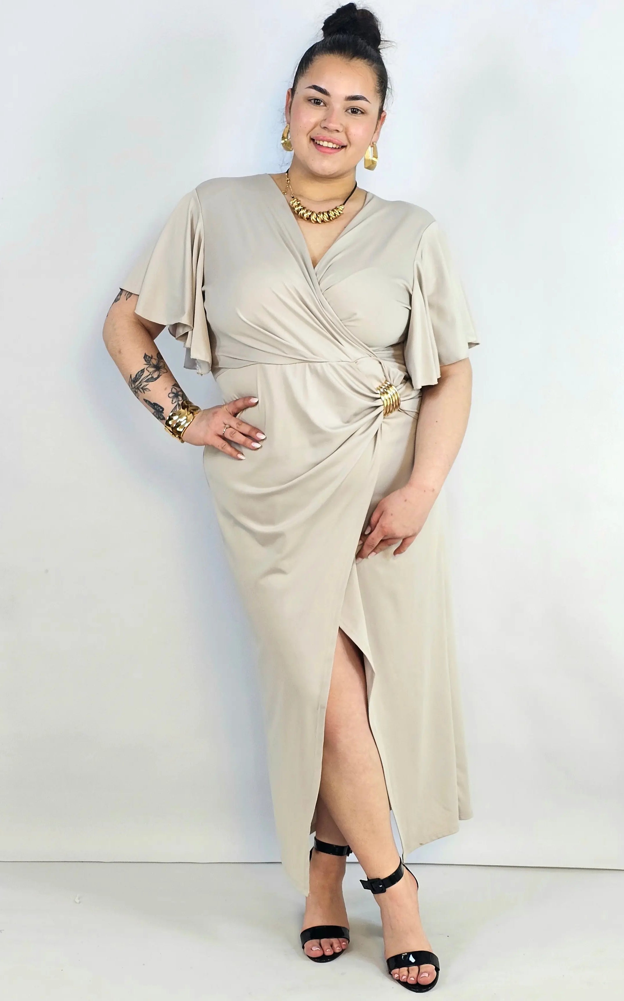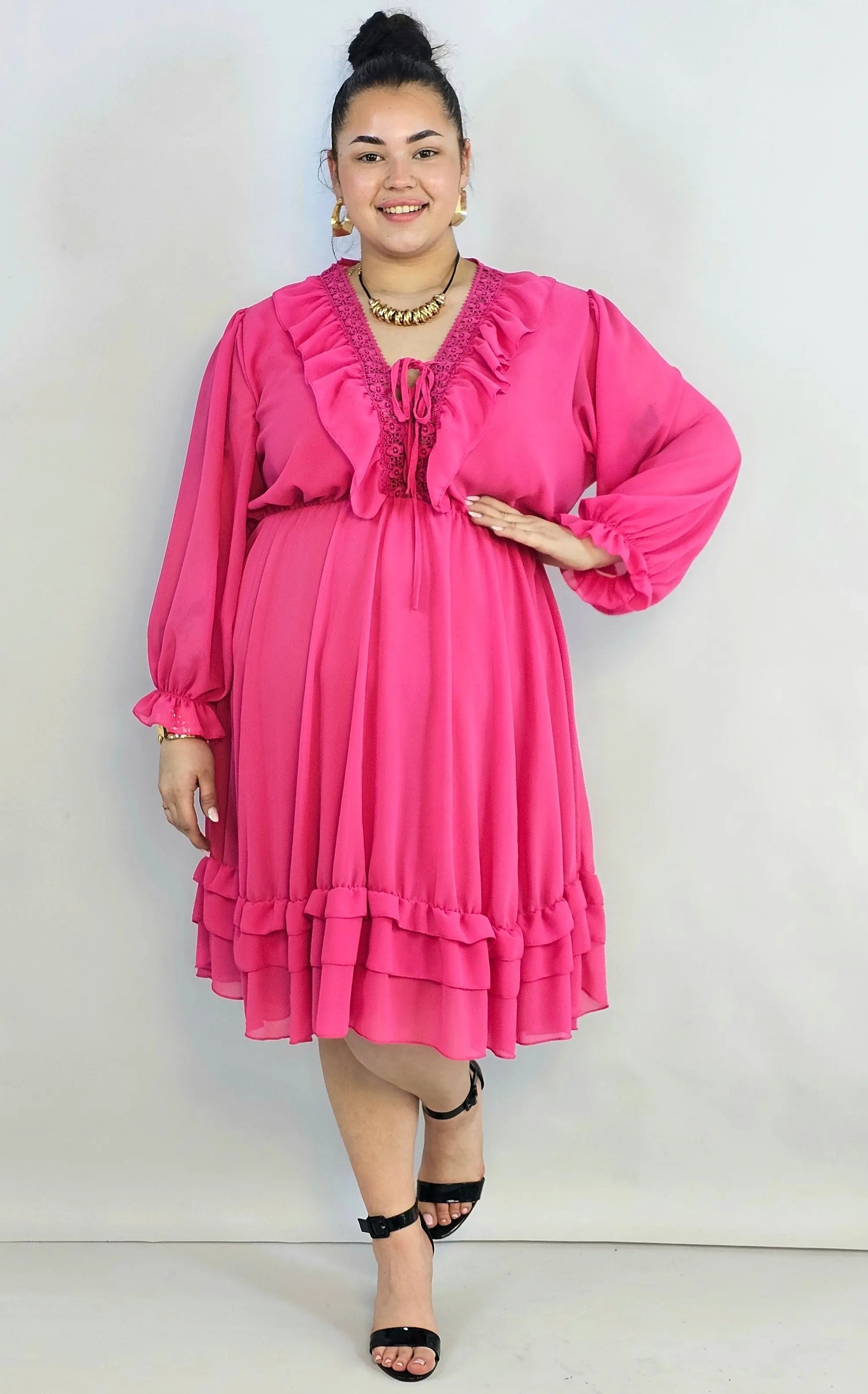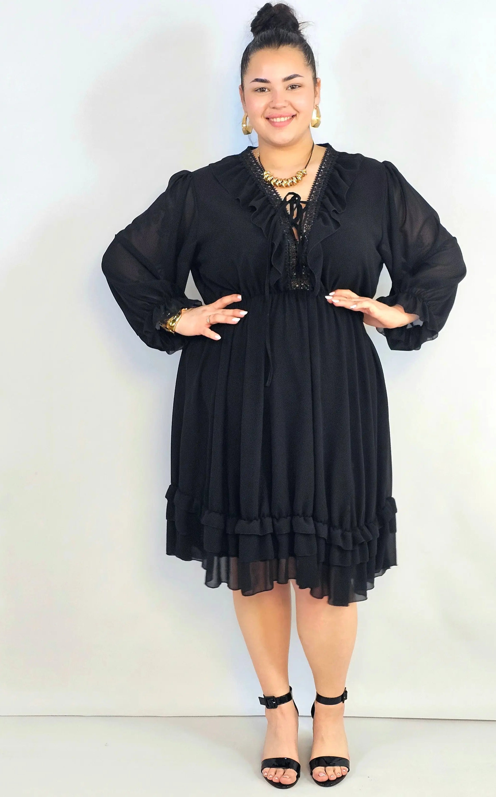 Sukienka plus size kopertowa z falbankowym rękawem – elegancja XXL